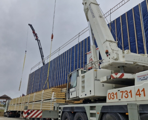 - mit Holz oder Schalengreifer am Grundkran so wie am Fly-Jib